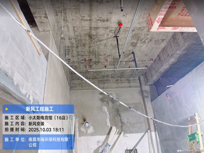 施工名稱:小太陽電競(jìng)館新風(fēng)安裝施工時(shí)間:2025年10月3日