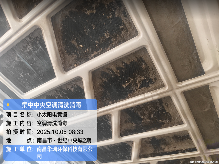 施工名稱:小太陽電競(jìng)館集中中央空調(diào)清洗消毒施工時(shí)間:2025年10月5日