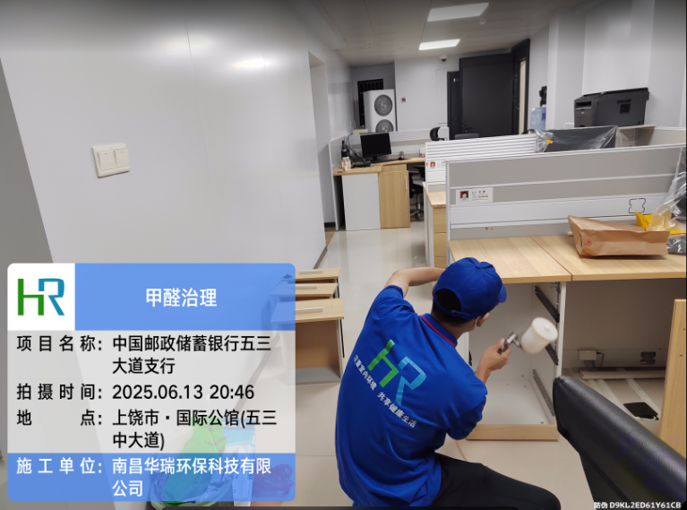 項(xiàng)目名稱:中國(guó)郵政儲(chǔ)蓄銀行五三大道支行甲醛治理施工日期:2025.06.13