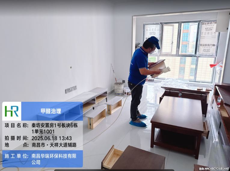 項(xiàng)目名稱:秦坊安置房1號(hào)板塊6棟1單元1001甲醛治理施工日期:2025.06.18