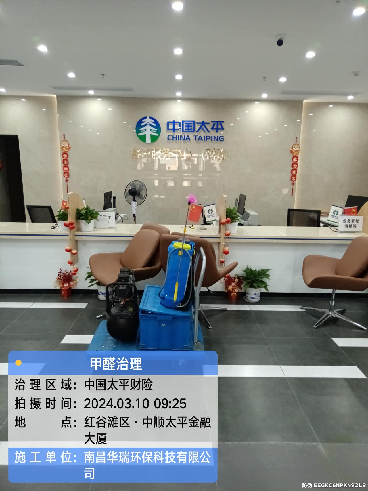 項目名稱:甲醛治理中國太平財險施工日期:2024.3.10