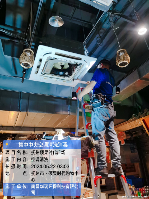 項目名稱:集中中央空調(diào)清洗消毒撫州碩果時代廣場施工日期:2024.5-21
