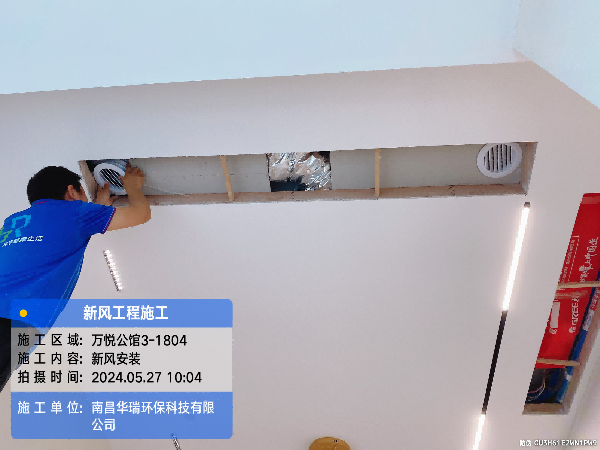 項目名稱:新風安裝萬悅公館3-1804施工日期:2024.5.27