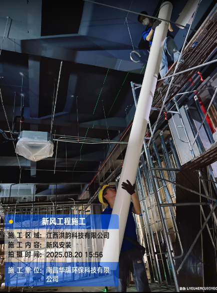 項(xiàng)目名稱:江西洪韻科技有限公司新風(fēng)安裝施工時(shí)間:2025年8月20日