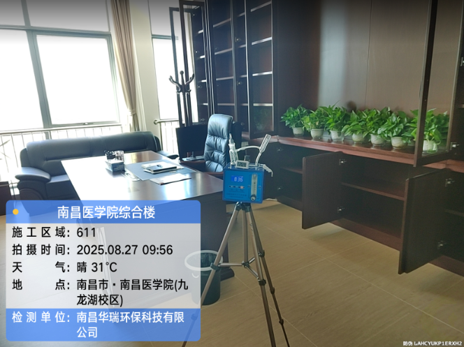 項(xiàng)目名稱:南昌醫(yī)學(xué)院(九龍湖校區(qū))甲醛檢測(cè)施工時(shí)間:2025年8月27日