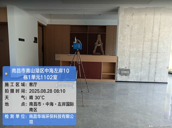 項(xiàng)目名稱:中海左岸國(guó)際小區(qū)甲醛檢測(cè)施工時(shí)間:2025年8月28日