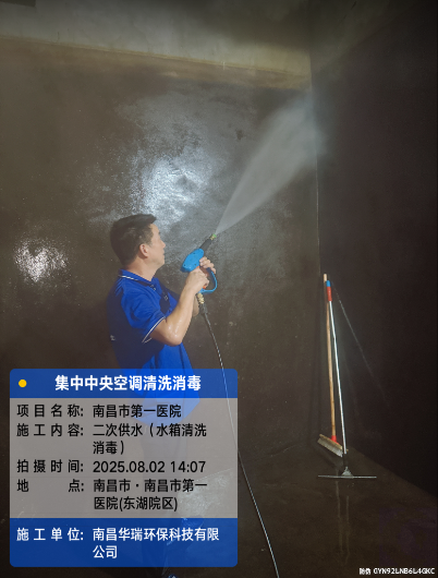 項目名稱:南昌市第一醫(yī)院二次供水水箱清洗消毒施工時間:2025年8月2日